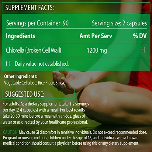 -. Feature : ✓ EARTHS #1 SOURCE OF PURE CGF: We only provide your chlorella powder organic, broken cell wall, and with active CGF (Chlorella Growth Factor). So you can be certain you are taking the exact potency to activate your immune system, improve energy, and support total detoxification. / ✓ NOW EVEN EASIER TO TAKE! You may have tried plain Chlorella powder or tablets and been turned off by its taste. Now you're looking for a better way. So we've popped your daily dose of fresh Chlorella organic powder into two easy swallow capsules. All in an extra-large 3 month supply to keep you going longer! / ✓ 90-DAY GUARANTEE: Produced from uncontaminated waters in the USA. Free from radiation, pesticides, herbicides, dairy, soy, gluten & GMO's. 100% organic, vegetarian and GMP approved. Thank you for choosing these ecologically pure chlorella capsules. If you have any concerns contact us ASAP. Order Now. / ✓ THE WORLDS PUREST WEIGHT LOSS SUPERFOOD: Organic Chlorella 600 (with CGF) provides a super dose of unique antioxidants and phytonutrients (all in one capsule, 2 pills per serving). It supports healthy cholesterol and blood glucose levels, and toxin clearance. It's also the chlorella supplement being talked about for noticeable reductions in body fat. / ✓ DID YOU KNOW IT'S AN INTERNAL DEODORANT? Thanks to Cracked Cell Organic Chlorella and its unique structure, potent nutrients and CGF levels - it pulls toxins (natural detox), cleans the blood and can help with body odor! It's also a powerful anti-aging antioxidant and one of the supplements, rich of protein - supports all round cell health. And for an added energy boost, combine it with our potent blue/green algae Spirulina. Order Now.