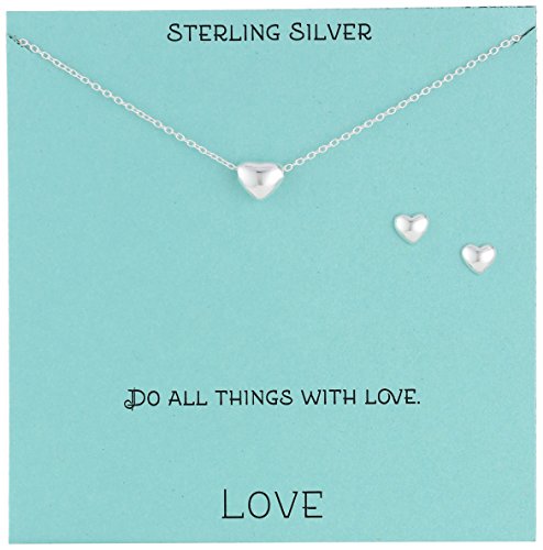 Sterling Silver Heart Necklace and Earrings Jewelry Set