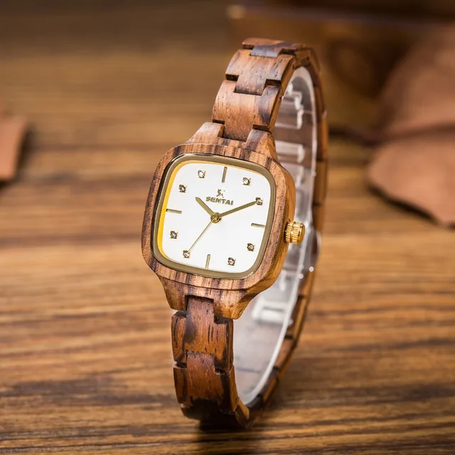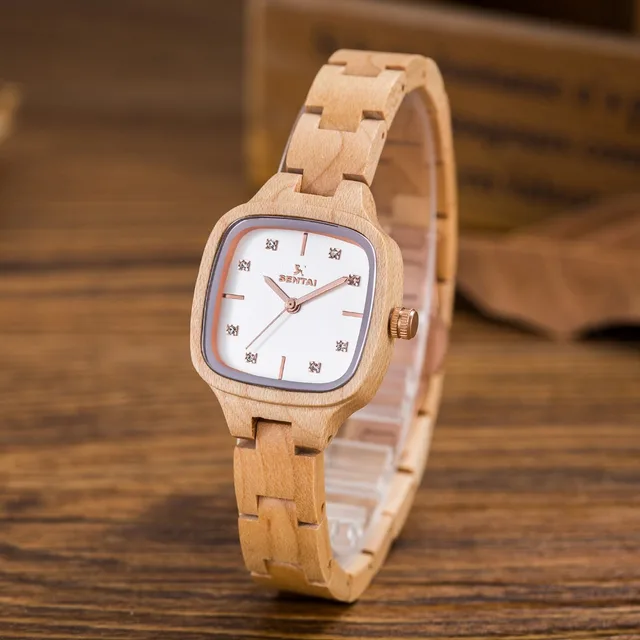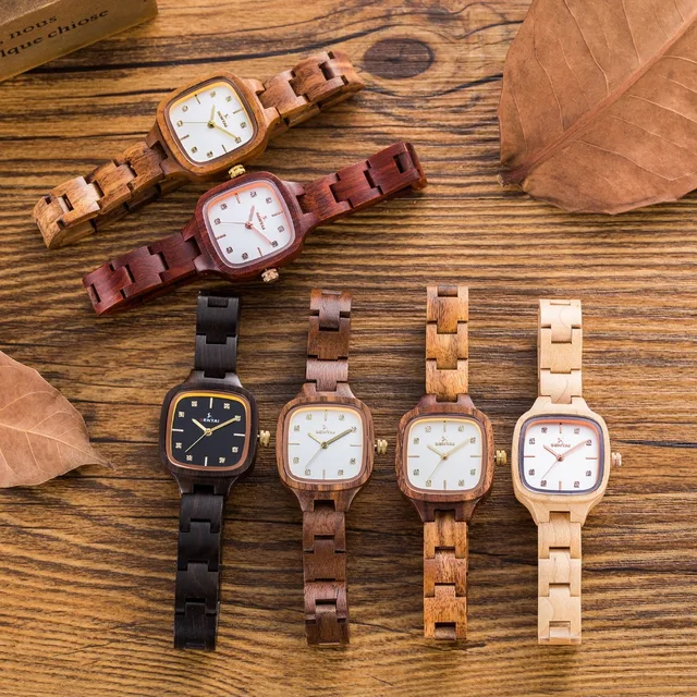 | [해외] 뜨거운 판매 패션 나무 손목 시계 여성 팔찌 시계 여성 천연 나무 시계 광장 간단한 디스플레이 |