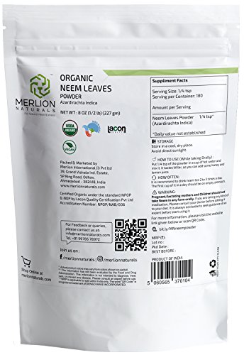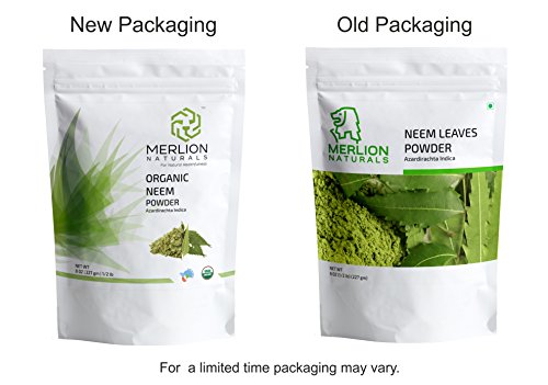 -. Title : Organic Neem Leaves Powder (Azardirachta Indica) by MERLION NATURALS - 227 g / 8 OZ / 1/2 lb | USDA NOP Certified 100% Organic | Vegan | Non GMO