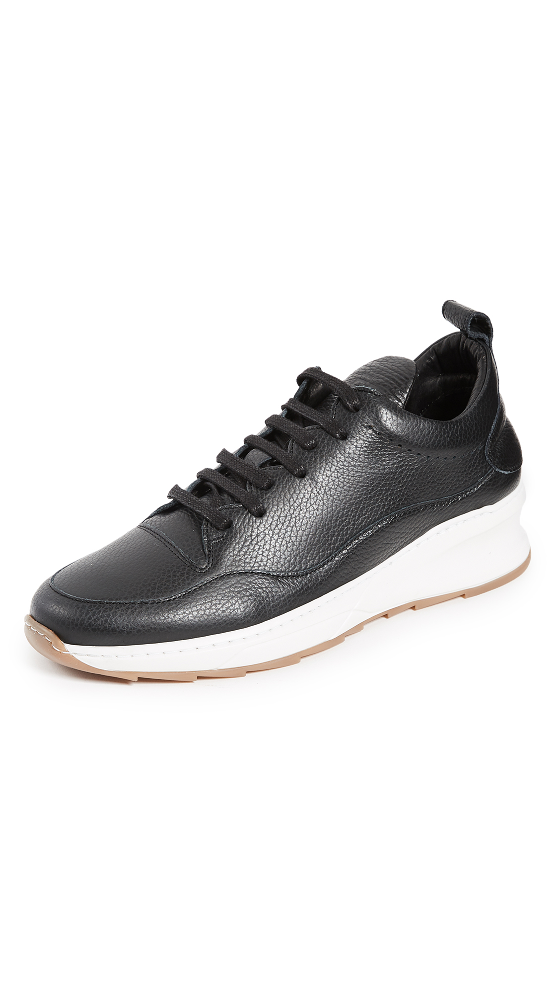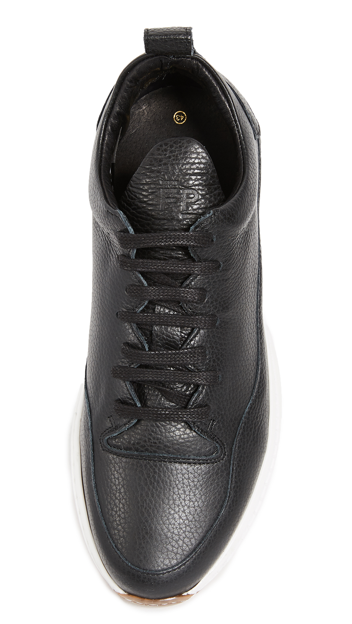 Sleek Filling Pieces sneakers crafted in pebbled Italian leather. Wavy side seams add a modern element, and the elevated FP Shark sole provide lightweight lift. Laces over the peaked tongue. Full leather sock liner. Sawtooth rubber sole.