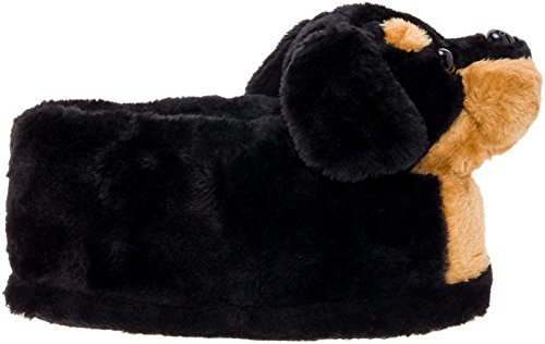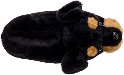 Product Description Represent your favorite pup in these Rottweiler Slippers by Silver Lilly! These adorable dog slippers are ultra soft and comfortable enough to lounge around in for hours.The extra cushioned upper features a precious rottie face, and a gripped outsole keeps your feet firmly in place on slippery wooden and tile floors. The soft, cushioned padded footbed adds additional comfort, keeping you comfortable even on harder surfaces. Great for dog lovers of all ages, these fun slippers are a wonderful way to show off your favorite breed! Available in sizes Small, Medium, Large, and X-Large. 0