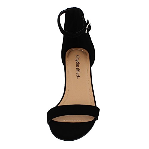 | Classified Chunky Block Heel Dress Sandal Over Toe Ankle Wrap Strap |