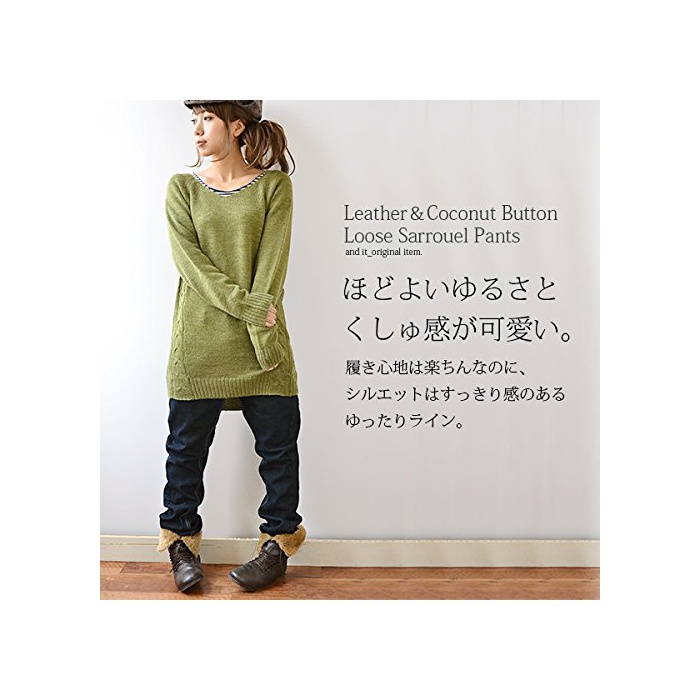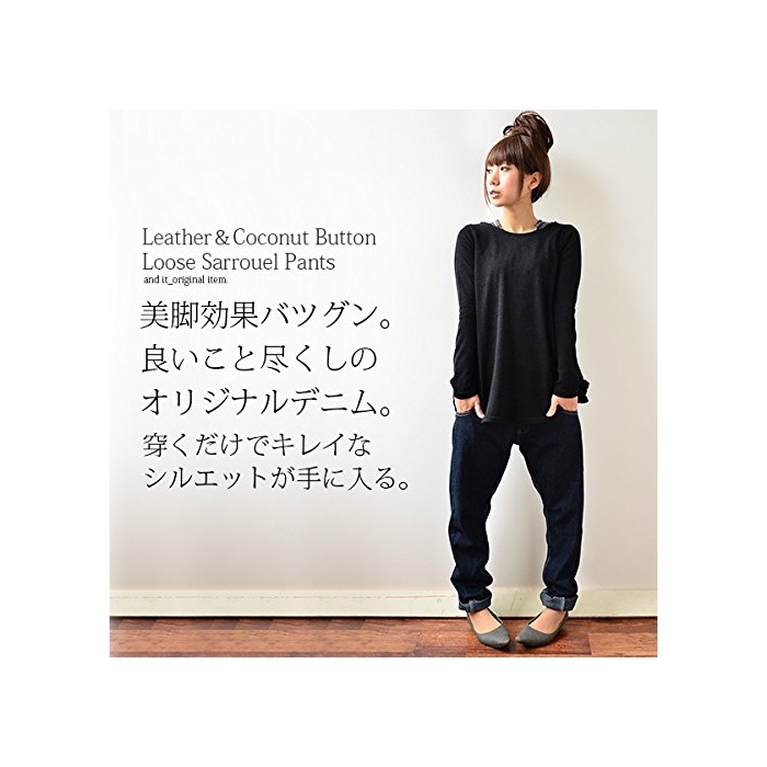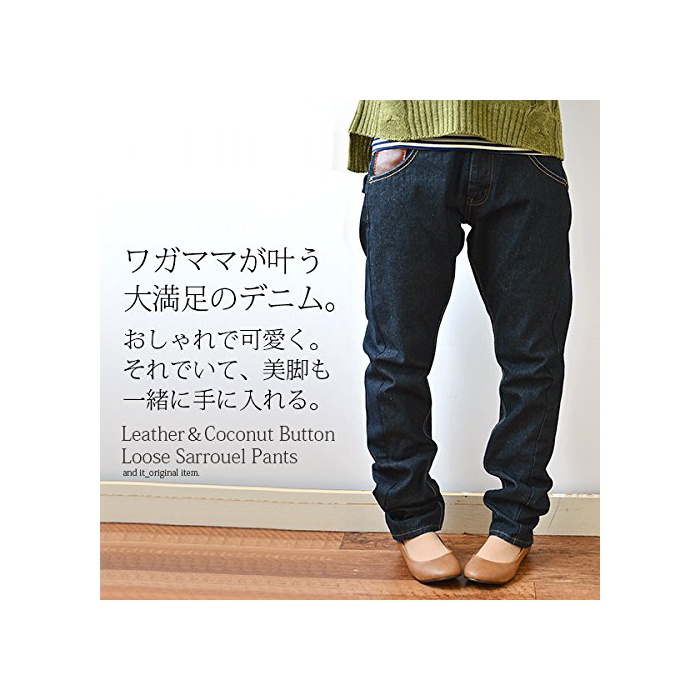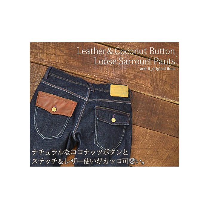 원본상품명: [アンドイット] and it_ レザ&ココナッツボタン使い3D立裁美脚サルエルデニム