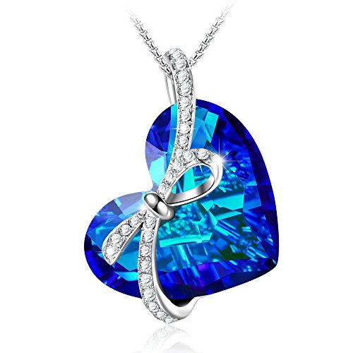 Angelady"The Blue Danube"Love Knot Pendant Necklace Gifts for Women Jewelry,Crystal from Swarovski Best Gift Idea *Expressing your love and best wishes to her by choosing this birthday Gift pendant necklace.