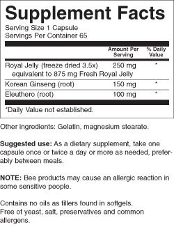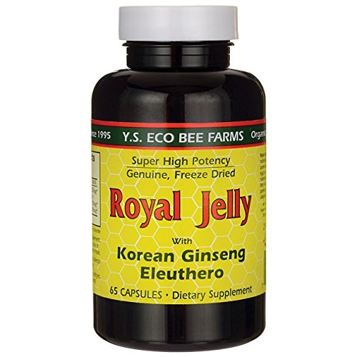 Royal Jelly 200 mg + Ginseng (Siberian 200mg, Korean 100mg) Y.S. Organic Bee Far, 65 Capsules
