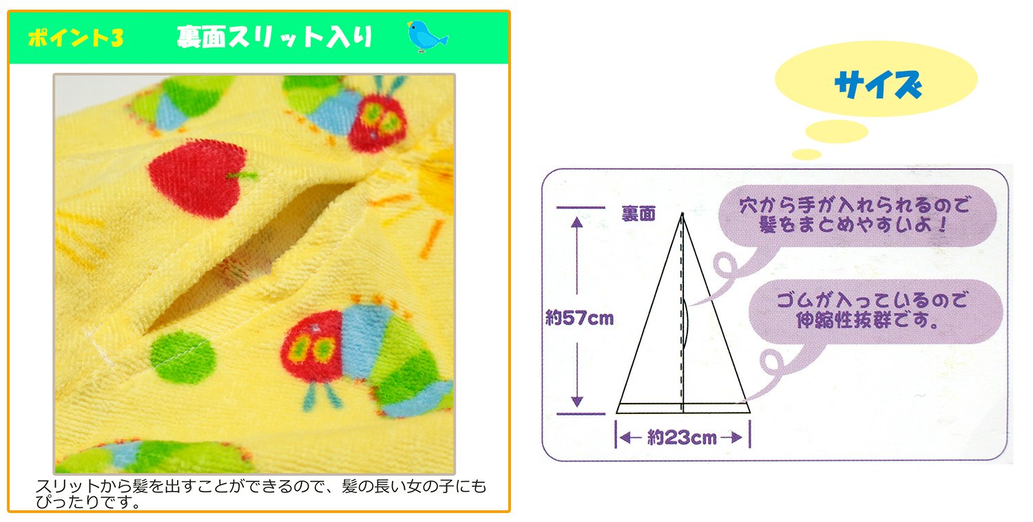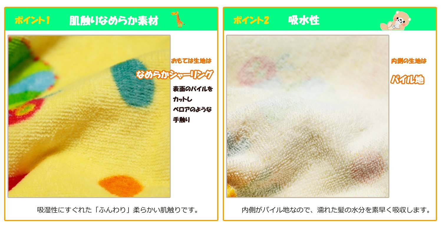 ● Since the inside is a pile ground, absorb moisture of wet hair quickly
