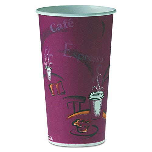 This SOLO 420SI-0041 disposable 20 oz. paper hot cup with Bistro print has a polyethylene lining for resistance to leaking and moisture penetration, and a rolled rim for rigidity and strength. It is suitable for serving coffee, tea, hot chocolate, and other hot beverages. This paper cup withstands beverage temperatures up to 205 degrees F. It is 5.9" high, has a 3.5" diameter, and is compatible with SOLO TLB316-0004, TLN316-00013, TLP316-0007, LK316W-0007, LK316B-0004, and LB3161-00007 lids (sold separately).