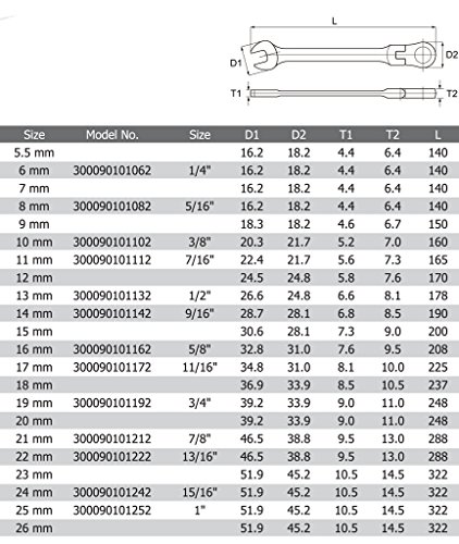 mobarel - 8mm Flex-Head Combination Ratcheting Wrench
