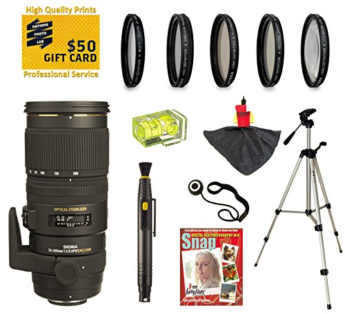 Opteka 시그마70200mm f / 2.8apo EX DG HSM OS FLD라지 아파―차망원 줌렌즈with UV,CPL,FLD,nd4,+ 10매크로 필터와 번들for