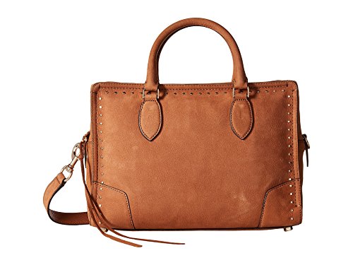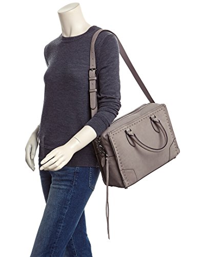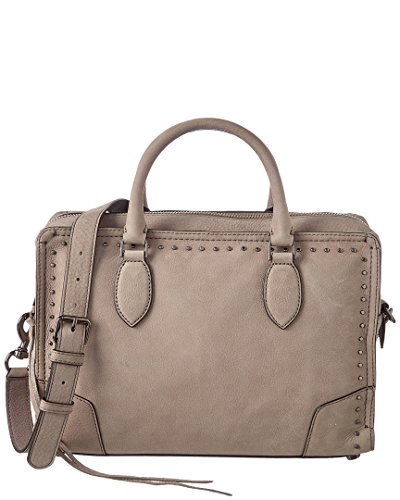 Color/material: grey leather. Exterior design details: gunmetal-tone hardware and studs, exterior pocket. Interior design details: fabric lining, interior pockets. Measures 12.5in wide x 9.25in high x 5.5in deep. Top handles drop 4.5in. Adjustable and removable shoulder strap drops 16.5in. Zippered top. Protective feet at bottom. Imported. Please note: All measurements were taken by hand and are approximate; slight variations may occur.Feature