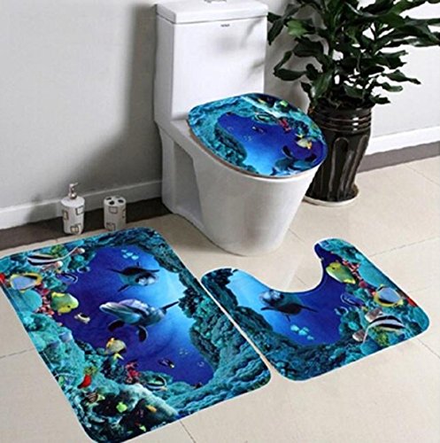 -. Title : Vovotrade Non-Slip Home Decoration, Bathroom Blue Ocean Style Pedestal Rug + Lid Toilet Cover + Bath Mat