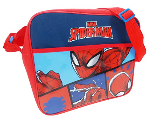 Studio : Trade Mark Collections Limited Publisher : Trade Mark Collections Limited Binding : Luggage Product Description A great Marvel Comics Spiderman themed courier bag, with a comic book, 4 panel style design. An adjustable strap allows the bag to be worn over the shoulder or across the body. It is made from polyester which is not only durable but can be wiped clean. It has front pocket for those quickly needed items or small bits. Age 3 . Not suitable for young children due to choking strangulation hazards. This item is not a toy and is intended for functional use only. Approx Size: 8.5 litres Dimensions: 29x34x10cm 0