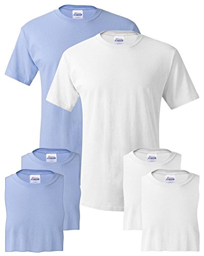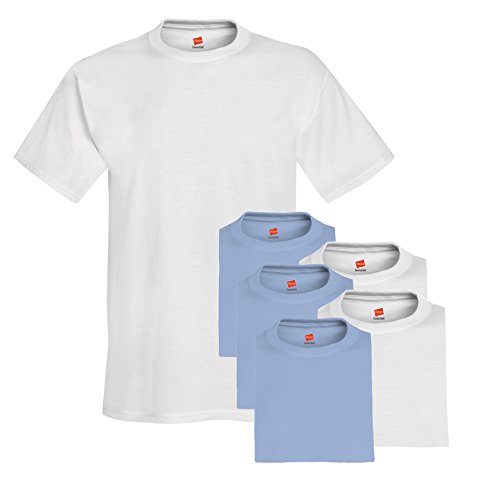 Hanes Men's 6-Pack Crew T-Shirt, 3 Light Blue / 3 White, Medium