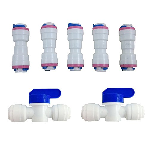 Lemoy 1/4" Tube Push Fit Straight Quick Connect Check Valve for RO Water Reverse Osmosis System (Pack of 5) (5 pack+2 ball valve)
