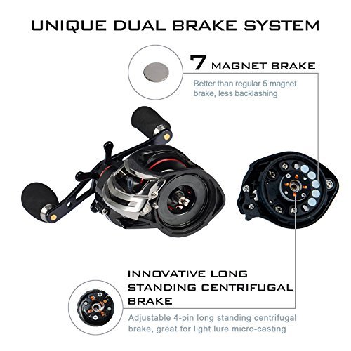 TOURNAMENT READY - The new Royal legend bait caster has state of the art dual brakes with a quick, easy to fine-tune reliable centrifugal and magnetic brake system for superior casting control.