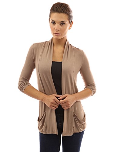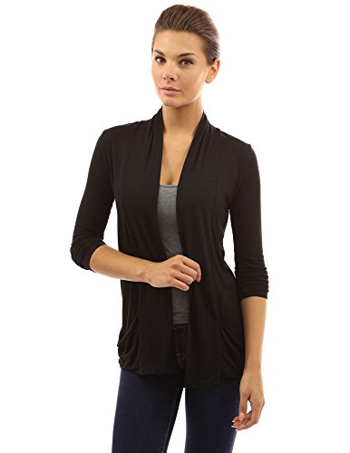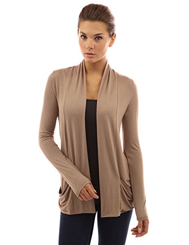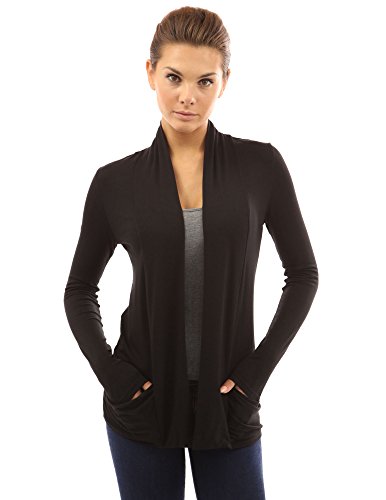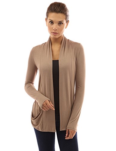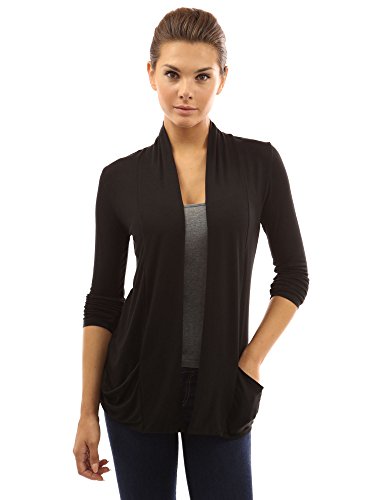 Product DescriptionSoft Open Front Long Sleeve Drop Pockets Stretch Light Cardigan. Model in pictures is 5 feet 8 inches (173cm) tall.0