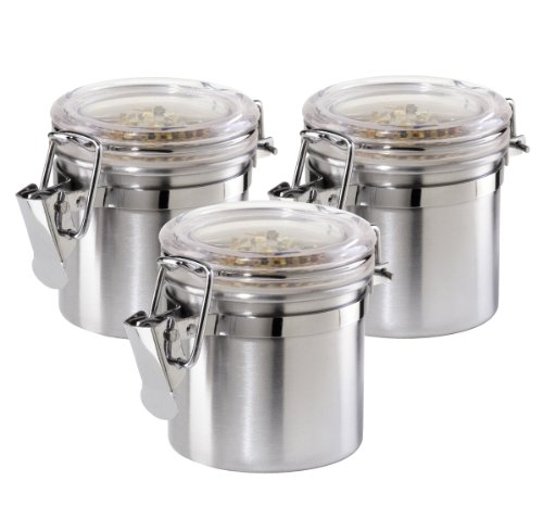 -. Title : Oggi 5301 3-Piece Mini Stainless Steel Canister Set with Airtight Acylic Lid and Clamp-Food Storage Container