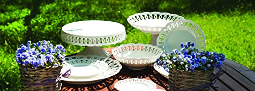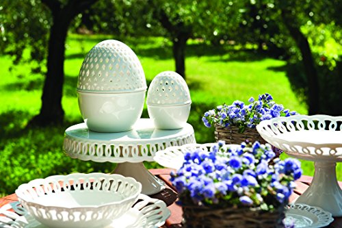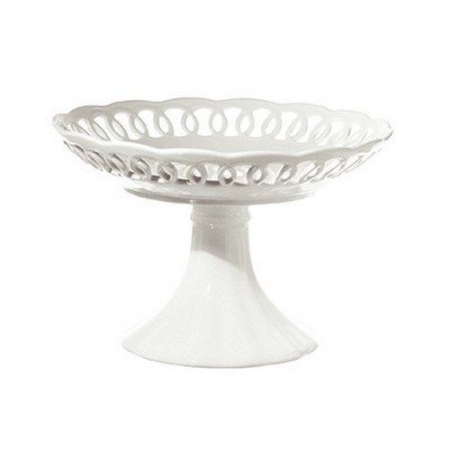 Carved bowl with stand in the Firenze collection features shabby chic charm and sweet lace edges; each delicate piece is special on its own; 9.75"