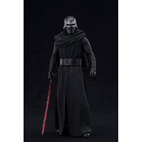 リーズナブルで集めやすいサイズ。スター・ウォーズフィギュアの新スタンダードARTFX+。「スター・ウォーズ/フォースの覚醒」からカイロ・レンが登場!『スター・ウォーズ/フォースの覚醒』から5体目の商品化は、ファースト・オーダーを率いる指揮官で強いフォースを持つ「カイロ・レン」。彼の激しい気性を表すような光刃を放つ十字型のライトセーバーは勿論、特徴的な黒いケープと、そこから覗くマスクの質感もしっかりと造形しています。差し替えパーツを使うことで、フードの脱着、左右の腕の上げ下げも再現可能で、あの劇中のシーンが蘇ります。商品は塗装済みの簡易組み立てキットなので開けてすぐに飾れます。足裏にはマグネットが入っており、鉄板入りのスクエア台座を使って自由度の高いディスプレイをお楽しみいただけます。Feature