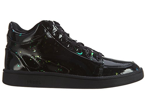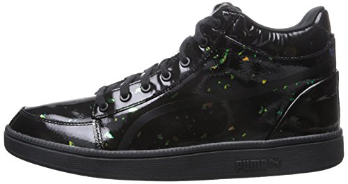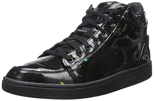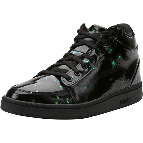 Studio : Puma Publisher : Puma Binding : Shoes Product Description Patent leather upper with specs of iridescent foil in a mid ankle height sneaker silhouette. Padded collar and tongue for additional comfort. Lace-up closure for optimal fit. PUMA logo on tongue, and MCQ Alexander McQueen stamp at heel. Breathable textile lining and a cushioned footbed for all-day comfort. Cushioned rubber midsole. Durable rubber outsole for excellent traction. Imported. 0