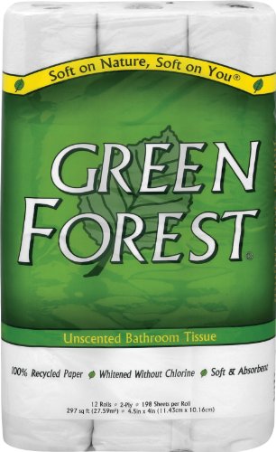 Green Forest 100% Recycled Bathroom Tissue, 198 sheets, 12 rolls (Pack of 8)