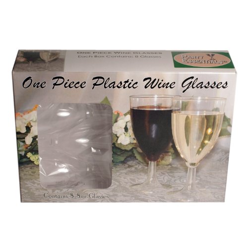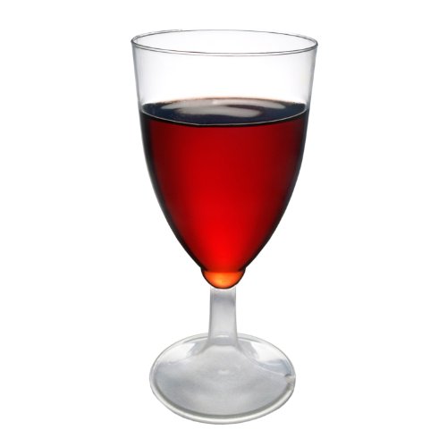 The NorthWest Enterprises WINEBOX-6 Partyware disposable plastic wine glass has a 8 oz. capacity and is suitable for use with wine, juice, and other cold beverages. It is made of clear plastic for visibility of contents and to coordinate with most tableware or drinkware designs and most decorations. This glass comes in packs of eight wine glasses.