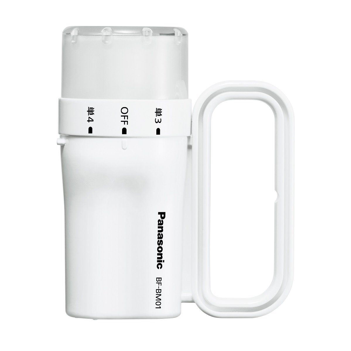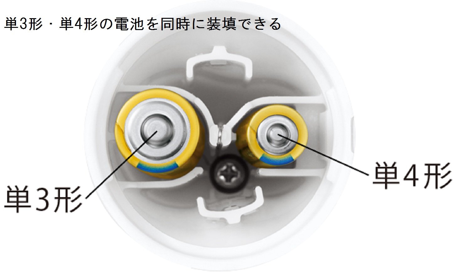 It can be used with either AA or AAA batteries.