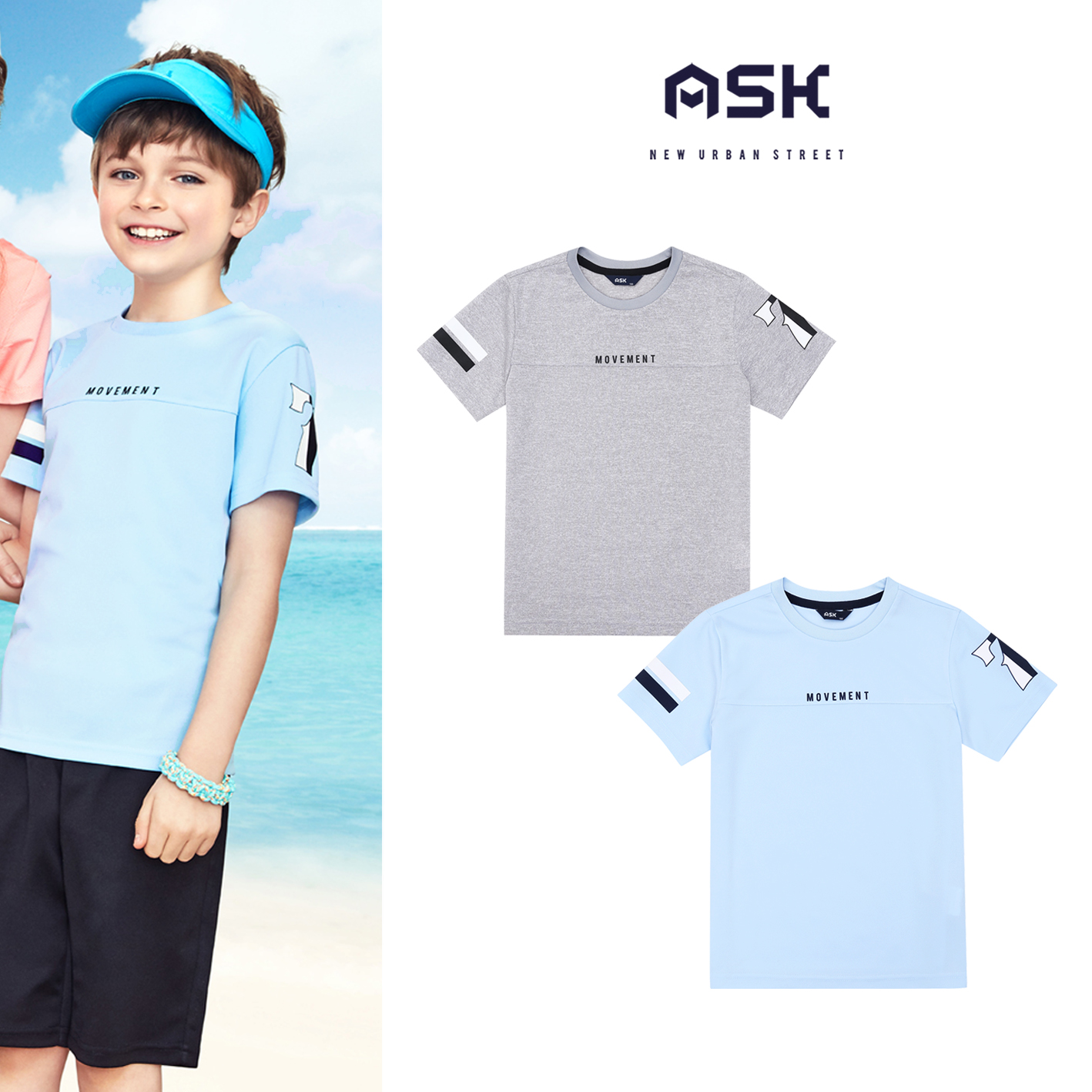 폴리 P.Q소재로 기능성 쿨맥스 티셔츠.       가슴절개 배색과 양소매에 나염이 포인트인 유니 전략 아이템. 2color진행.