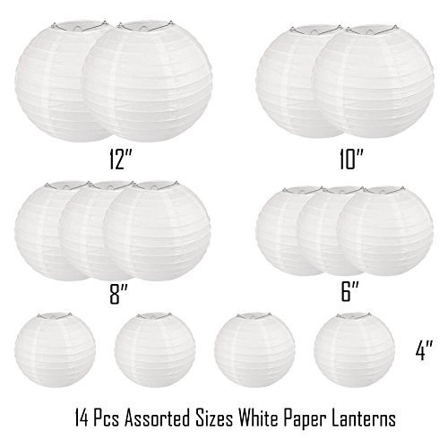 - QUANTITY: Selizo white paper lanterns set come with 14 pcs assorted white round paper lanterns. Variety sizes choose that you can make elegant backdrop or hung around the room. Pretty for inside or outdoor party decorations