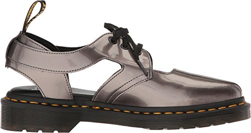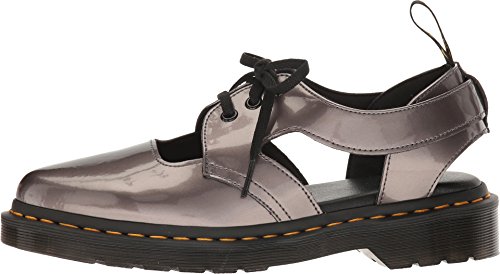 -. Binding : Apparel -. Brand : Dr. Martens -. Color : Pewter -. Department : womens -. Feature : Zero tongue and a cutaway heel / Made with a sweet combo of polished smooth (the original, durable high-shine Doc's leather) and a classic patent leather / Iconic air-cushioned sole / Upper and sole are heat-sealed and sewn together / Lace-up system with sturdy metal eyelets for a secure fit -. Label : Dr. Martens -. Manufacturer : Dr. Martens -. NumberOfItems : 1 -. PackageQuantity : 1 -. ProductGroup : Shoes -. ProductTypeName : SHOES -. Publisher : Dr. Martens -. Studio : Dr. Martens -. Title : Dr. Martens Women's Genna Patent Leather Casual Oxfords