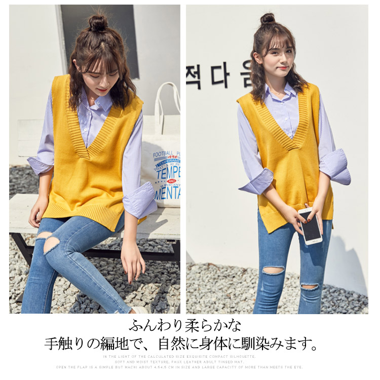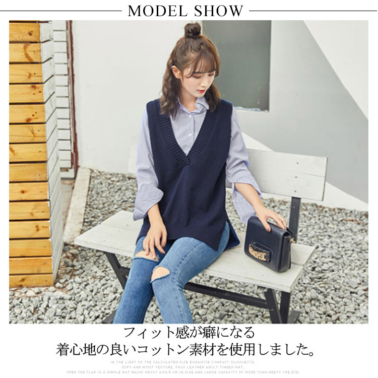 | 今季トレンドのVネックニットベスト。フィット感が癖になる着心地の良いコットン素材を使用しました。いつものコーデに取り入れるだけで簡単におしゃれ感がUP!定番のvネックでシャツ襟やインナーのチラ見せがさり気なくてオシャレです。ふんわり柔らかな手触りの編地で、自然に身体に馴染みます。前は腰まで、後身頃は少しヒップが隠れるぐらいの丈です。サイドスリット入りなので、身体のラインが出すぎず、気になる部分をふんわりカバーしてくれます。長く着回せるアイテムで季節の変わり目で手にとっておきたい。 | |