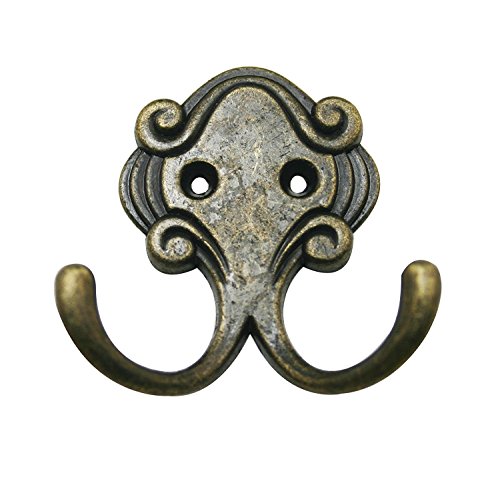 Amanaote Metal Antique Brass Hardware Double Prong Robe Hook Clothes Hanger With Screws(Pack Of 8)