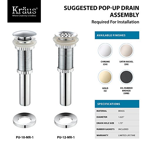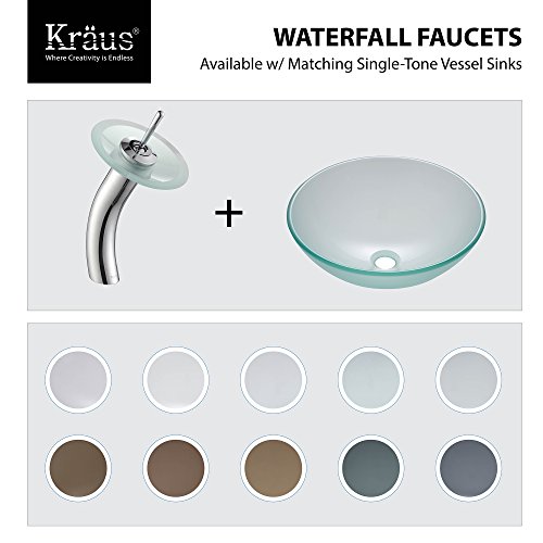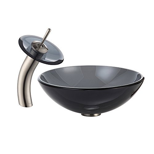 Kraus KGW-1700SN-BLCL Single Lever Vessel Glass Waterfall Bathroom Faucet Satin Nickel with Black Clear Glass Disk