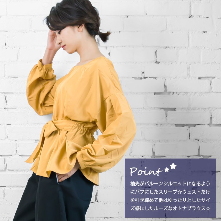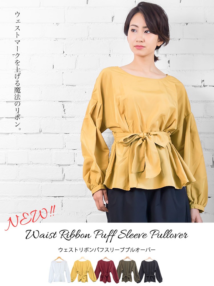 商品名:ウェストリボンパフスリーブプルオーバー