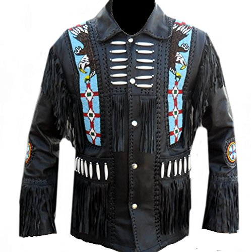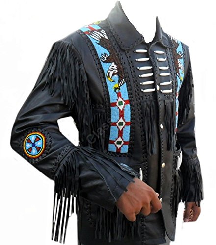 Coolhides Mens Eagle Beads Western Leather Jacket