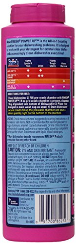 Finish Power Up All in 1 Detergent Booster takes dishwashing to another level, especially if you live in a hard water area. Its versatile formula has four boosting actions that work with your detergent to boost your dishwashing, and give you one simple solution for all of your dishwashing issues. It works hard to remove: