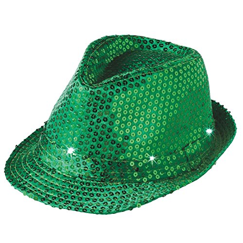 -. Binding : Toy -. Brand : Midwest-CBK -. EAN : 0738449423479 -. Feature : Includes One St. Patrick's Day Sequin LED Light Up Flashing Fedora Party Hat / Celebrate St. Patricks Day in style with this stylish sequins covered green fedora. / Features 3 light speeds. LED lights can be turned on/off with the switch located on the front of hat. / Battery operated (Batteries Included). One Size fits most older children and adults. / Dimensions: Inside of hat: 8" x 6" x 4". Outside: 5.5" x 10" x 9" -. IsAdultProduct : 0 -. Label : Midwest CBK -. Manufacturer : Midwest CBK -. ProductGroup : Toy -. ProductTypeName : TOYS_AND_GAMES -. Publisher : Midwest CBK -. Studio : Midwest CBK -. Title : St. Patrick's Day Sequin LED Light Up Flashing Fedora Party Hat, Green, One Size, 10" x 5.5" x 9" -. UPC : 738449423479