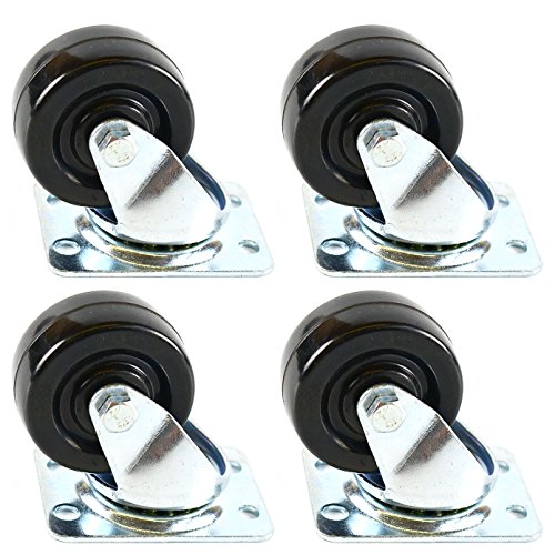NK CHR22SRE 2-inch Low Profile HD Rubber Wheel Swivel Plate Casters, Set of 4