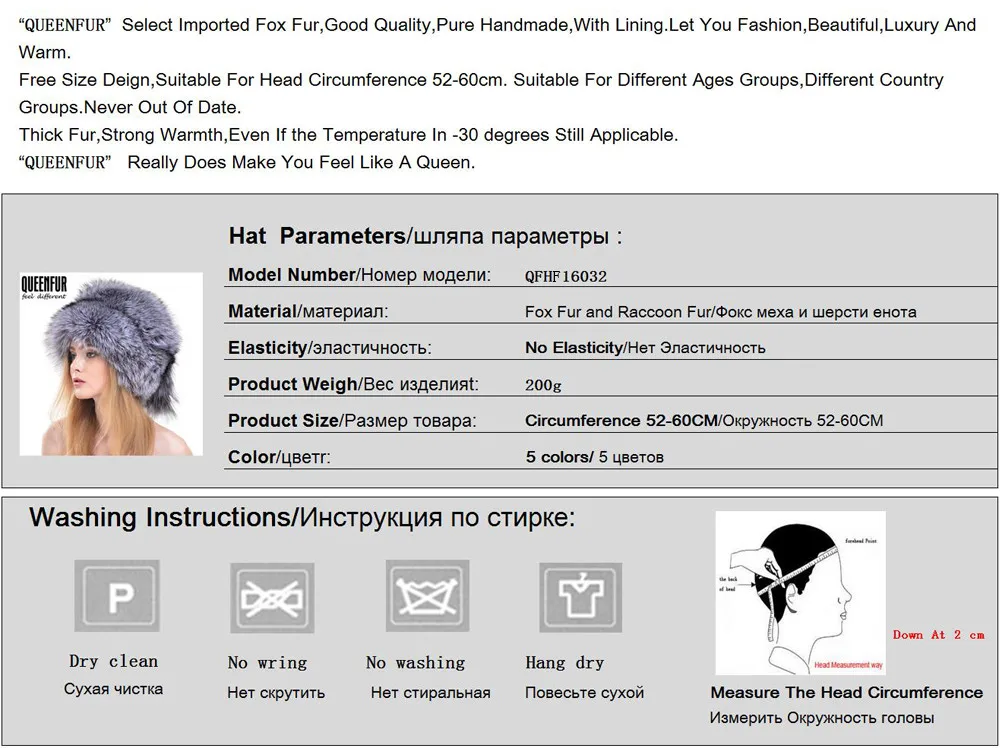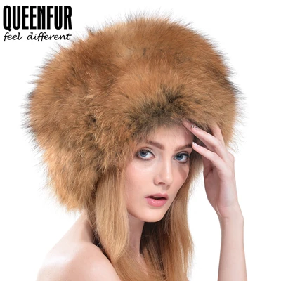 | [해외]Queenfur 겨울 여성 모피 모자 진짜 여우 모피 모자 류 러시아어 야외 여자 너구리 모피 비니 2016 새로운 패션 모피 모자 |