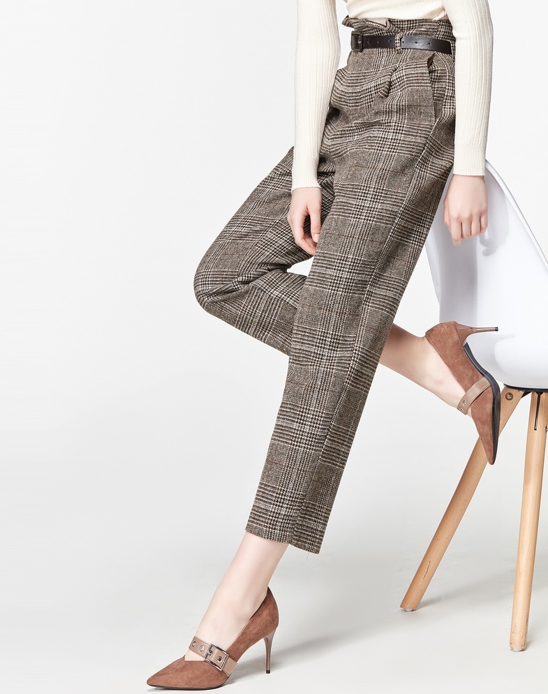 トラディショナルな装いを演出する、グレンチェック柄が目を惹くクロップドパンツです♪