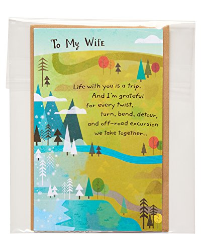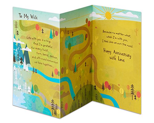 Inside message: because no matter what, when I'm with you, I feel like we own the road. Happy Anniversary with love This Anniversary card for a wife features a special card fold and gold foil embellishments Embellished with gold foil. Envelope included.