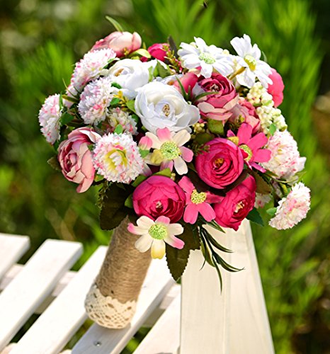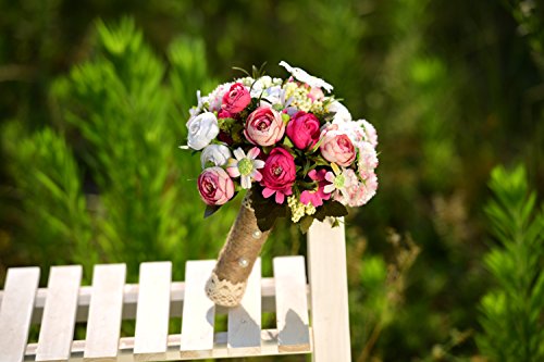 YAMUDA Wedding Toss Bouquet, Artificial Rose Flower, Wedding Bouquet, 9 Inch Tall (Romantic Rose)