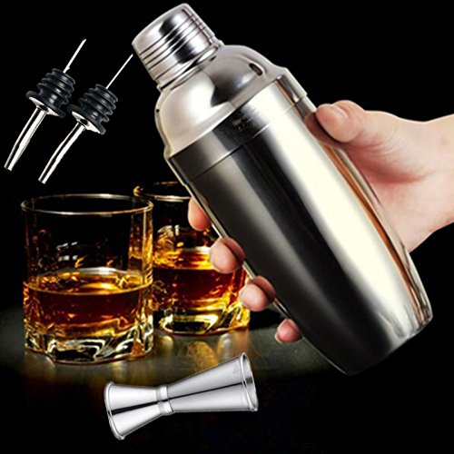 -. Title : JINCHAO Cocktail Shaker Set Bartender Kit - with Double Measuring Jigger and 2 Liquor bottle Pourers - 25 ounces Premium Bartender Stainless Steel Martini Mixer Built-in Strainer