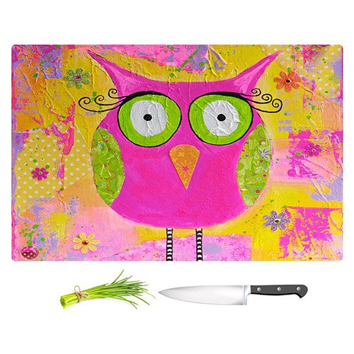 DiaNoche Designs CB-MicheleFaussHootietheOwl2 Michele Fauss-Hootie the Owl Unique Kitchen Slicing Dicing Bar Artistic Decorative Cutting Boards from, Large 15" x 11"