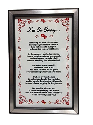 I'M SORRY GIFT FOR HIM - This framed gift is a unique and sentimental present that any man or woman could enjoy and the perfect 'I'm So Sorry' gift sharing your love with that special someone and your sincere regret for your mistake