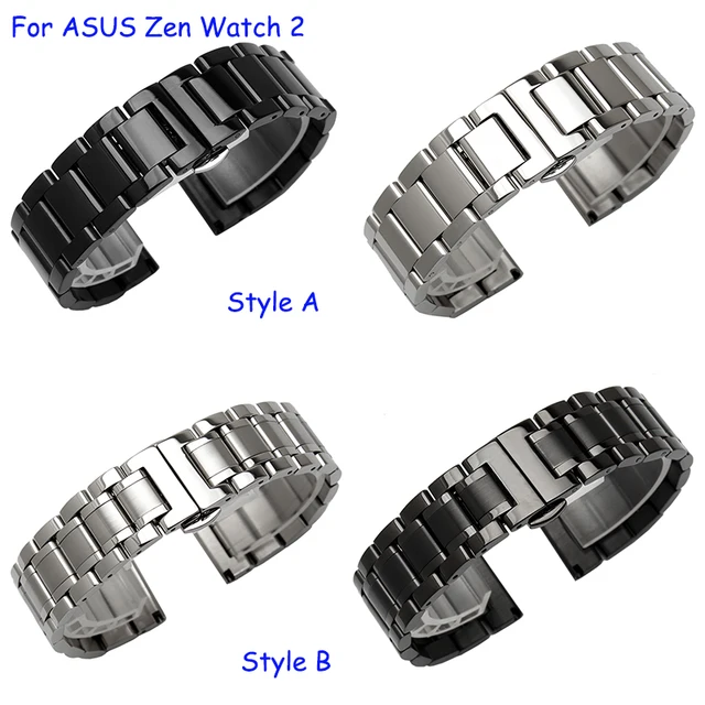 | [해외] 22 미리메터 금속 팔찌 asus zenwatch 2 품질 솔리드 스테인레스 스틸 손목 시계 블랙 실버 |