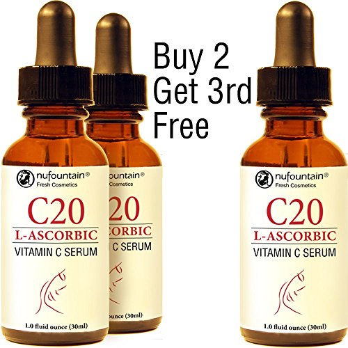 -. Feature : Made Fresh When Ordered with Free Domestic Shipping. 1 Fluid Ounce (30mL) of 20% L-Ascorbic Acid (Vitamin C) in purified water and glycerin base in sealed light-blocking bottle with dropper for dispensing serum. / A powerful, yet clean, 20% l-ascorbic acid vitamin C serum with skin identical and skin conditioning ingredients. / Daily application of NuFountain C20 vitamin C serum improves texture, fine lines and wrinkles and promotes a supple, resilient, youthful, glowing complexion. For all skin types. Specially formulated, fragrance-free & oil-free for resilient, acne-prone skin types. Manufactured using only the freshest, highest-quality ingredients. / Made under strict, rigorous standards, with a high attention to detail. / Made in the U.S.A. Made Fresh When Ordered with "Date Made" written on bottle. Store unopened bottles in refrigerator.