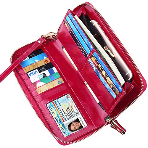 -. Feature : 100% REAL LEATHER - Top grain leather with wax finish, feels luxury and comfortable. Looks even better after using for a long time. / SAFETY & PRIVACY - Our wallets are equipped with advanced unique proprietary blocking material, which blocks RFID signals and protects the valuable private information stored on RFID chips from unauthorized scans. Tested & Approved by Independent Test Lab.Tested from 10MHz to 3000MHz, including 13.56 MHz in which the credit cards operate. / FUNCTIONAL DESIGN - 19 credit card slots, 1 ID window with central cut out over,1 zipper pocket for change,2 currency pockets and one pen loop, this wallet is suitable for cash, coins, cell phone like as iphone7 plus, passport, pen, checkbook and with a removable wrist strap. / PRACTICAL - Great wallet with a wristlet strap,it allows you to easily carry it in hand or put it in bag. You can use it all the time it's so easy to carry around. Dimensions: 8.1"L x 3.9"W x 0.9"H / 100% MONEY BACK GUARANTEE - We know you'll love our wallet as much as we do, If for any reason you're not 100% SATISFIED, let us know and our customer service team will make things right: full refund or a free replacement, whichever you prefer.
