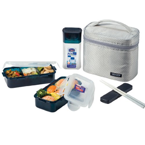 Lock&Lock Lunch Box Set with Gray Bag and Water Bottle